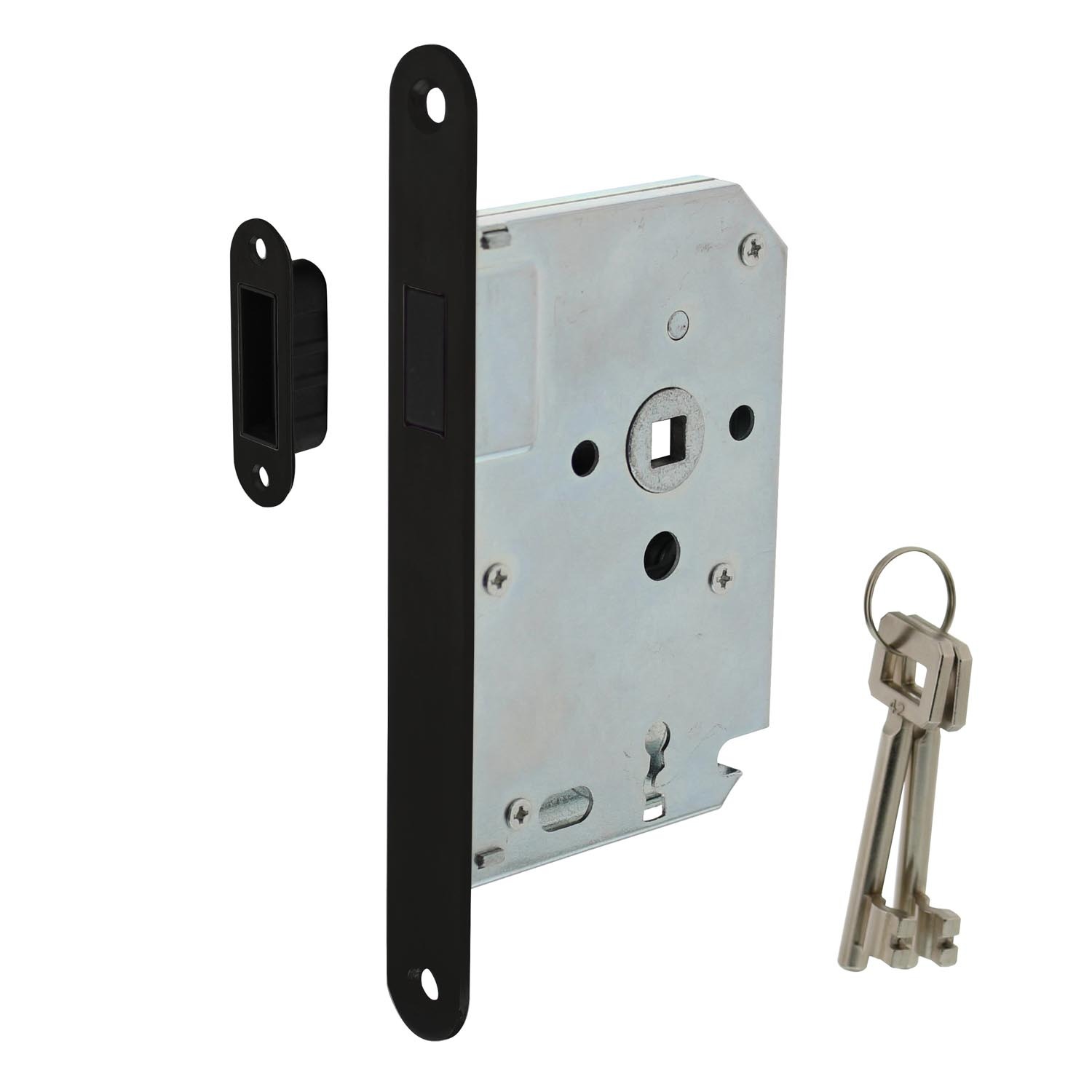 Wat ontvang je bij aankoop van de Intersteel | Woningbouw magneet klavier dag- en nachtslot 55mm | Voorplaat Afgerond | Zwart?