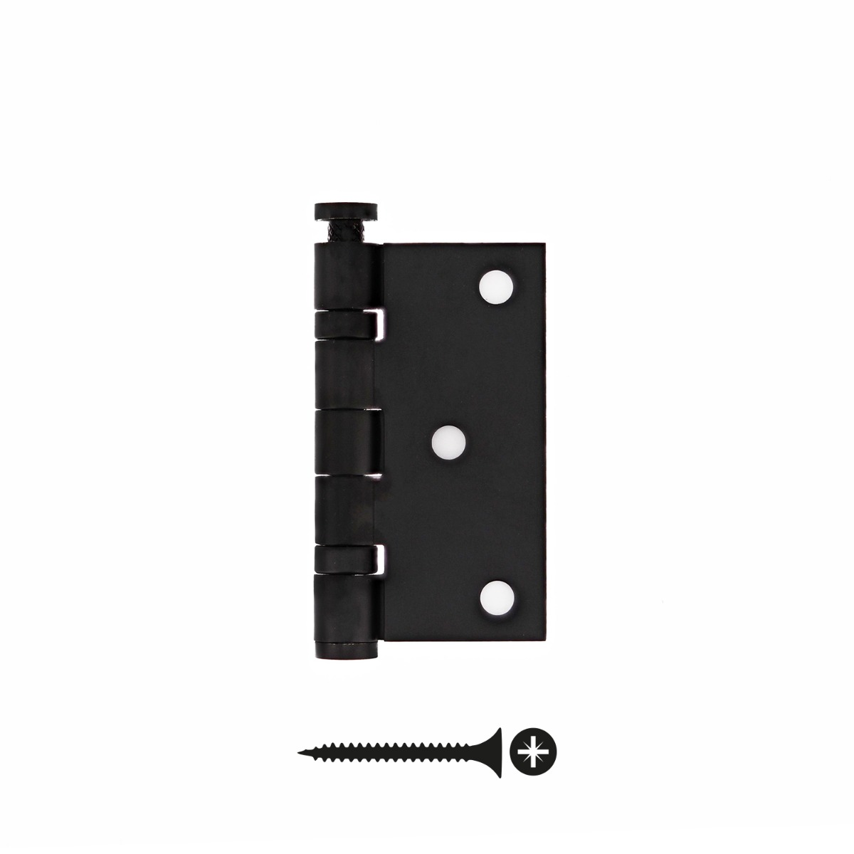 Dit Kogellagerscharnier is vervaardigd uit roestvast staal en is naderhand van een mat zwarte finish voorzien, waardoor het een matte uitstraling krijgt. Door het gebruik van massief rvs heeft dit product een lange levensduur. Dit scharnier met ronde hoeken is toe te passen op zowel naar rechts als links draaiende deuren, doordat u de stift en de einddop kunt demonteren. Het Kogellagerscharnier is 76 mm hoog, uitgeklapt 76 mm breed en heeft 2,5 mm dikke bledden. Dit scharnier is geschikt voor deuren met een gewicht tot 70 kilo.