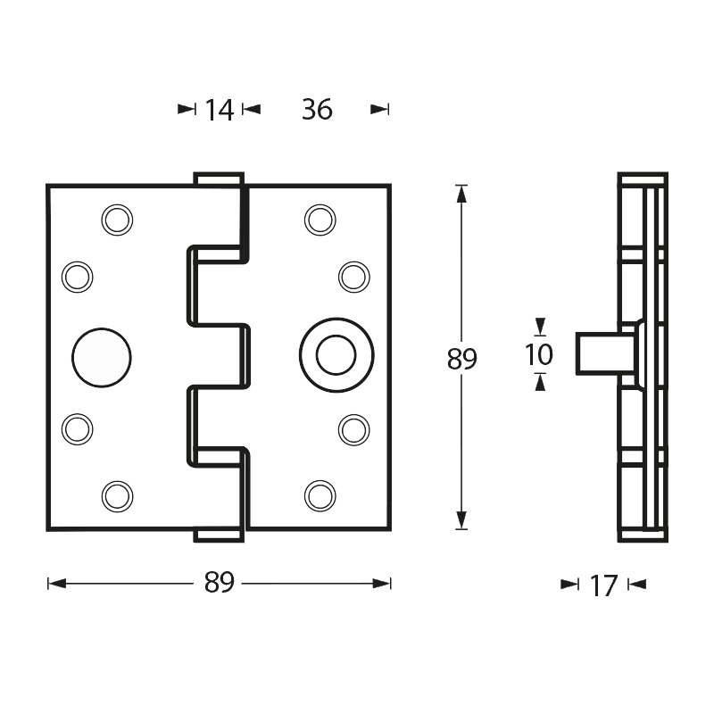 • 1 kogellagerscharnier in RVS geborsteld met rechte hoeken en dievenklauw